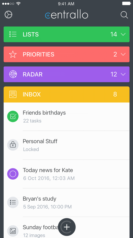Centrallo is an elegantly simple organization tool that will always keep you on track. Add anything throughout your day, then view and organize everything at night.