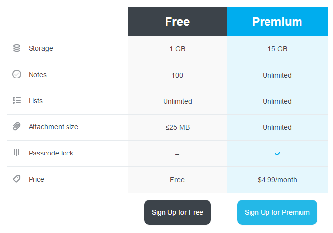 We are pleased to announce an update to our business model after months of power user conversations and market research. Now, 100 notes with unlimited lists and 1GB of storage will come bundled with Free accounts.